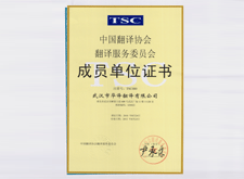 中国翻译协会成员单位证书